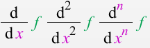 Higher derivatives can also be calculated in a single command by specifying the variable repetitively or using the $ notation, as shown below.