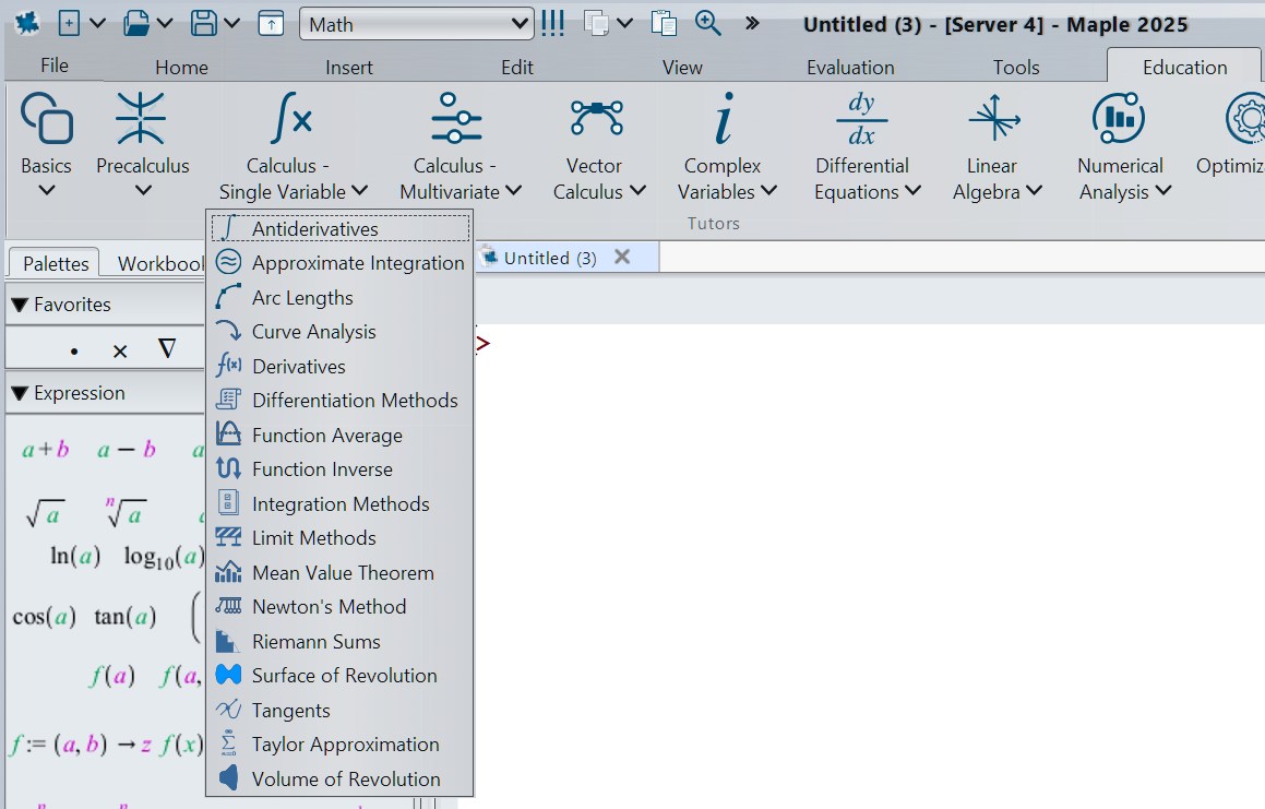 Figure 12.6. Opening up the Differentiation Methods tutor using menus.